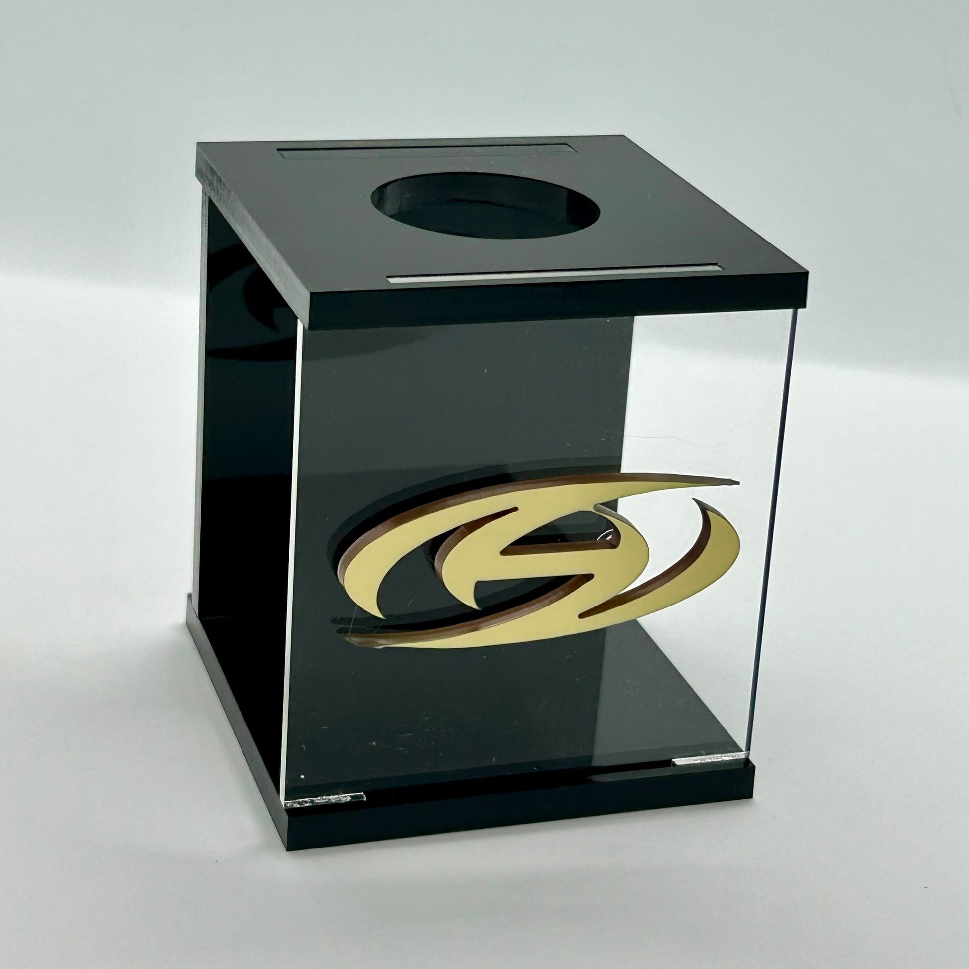 Crafted from high-quality, black and transparent acrylic material, this lightstick holder offers a sleek and modern design that will complement any lightstick. The front is customized with a gold Ateez hurricane logo, and can be further customized by engraving names of their songs on the clear panel behind the logo! The top and bottom are made from black acrylic to accentuate the lovely bronze and black design of the Lightiny (Version 2 is shown in the photos). Whether you are a Pirate King or Pirate Queen, you are sure to love this lightstick display!